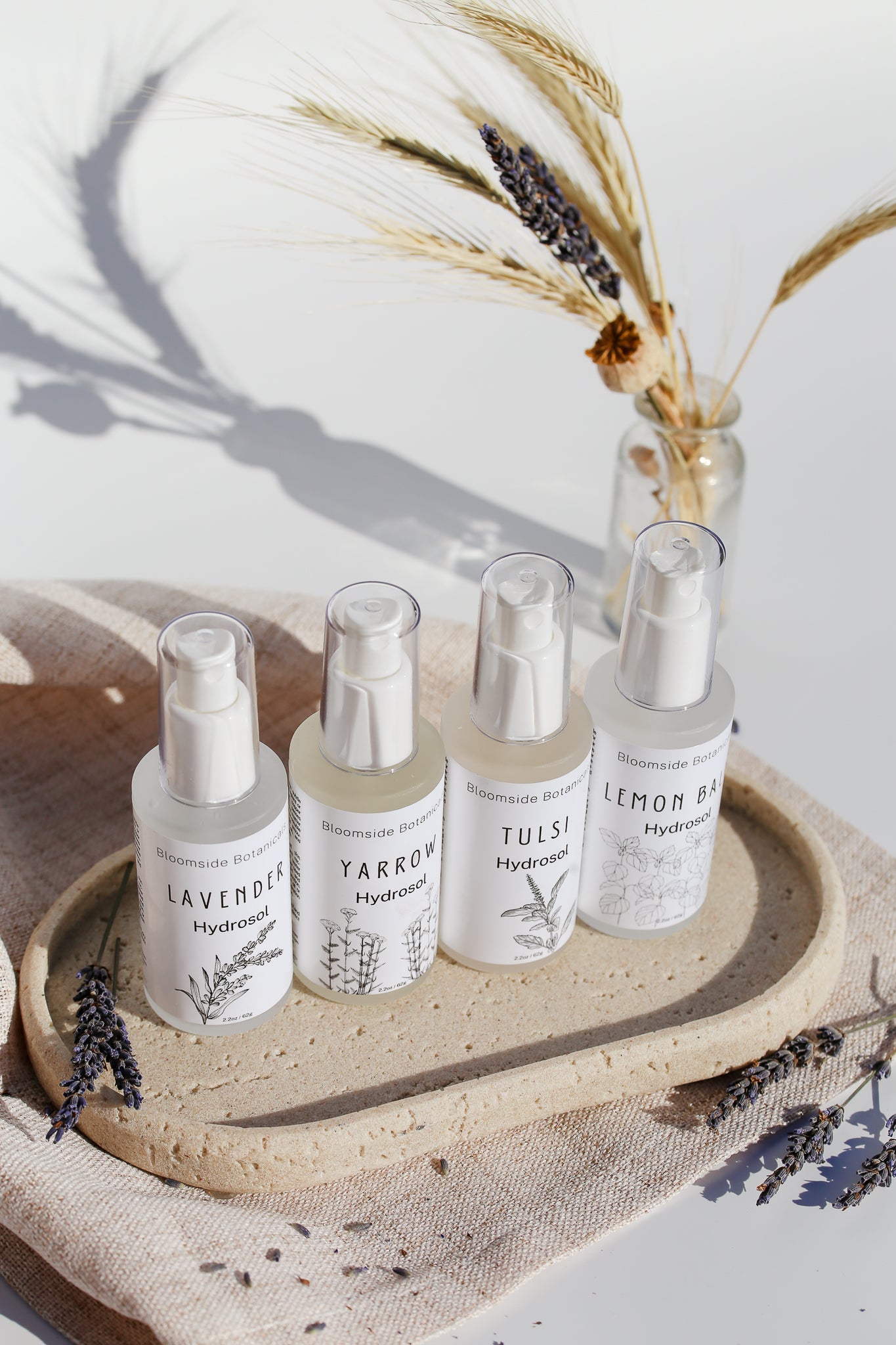 Well-suited for all skin types, hydrosols are recommended as the water element or face toner used to balance skin pH and optimize barrier function.